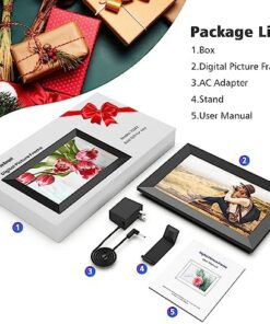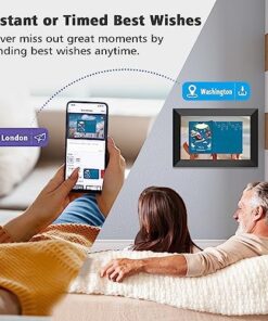 【Auto-Rotate and Best Wishes】With automatic rotation feature, you can place the digital memory display frame in either portal portrait or landscape mode, it will adjust the orientation of your photos to perfectly fit the frame. Can be wall mounted. The best wishes function make you won’t miss out great moments by sending best wishes anytime. You can edit and send instant or timed wishes to your loved ones on special festivals, such as Valentine’s Day, Mother’s Day, Father’s Day, Christmas, etc.