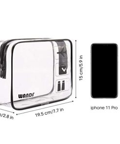 HIGH-QUALITY FABRIC & REINFORCED SEAMS — Utilized 0.6mm thick transparent PVC, WANDF transparent large toiletry bag is more durable and sturdy than most other products. Reinforced seams make it never tears and ensures that your travel make-ups or toiletries well organized. No longer worry about travel toiletry bag splitting easily and cosmetics spread anywhere!